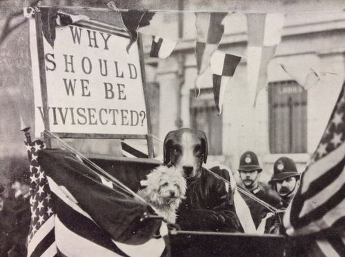"Sarah Browne's film The Shambles of Science, featuring human and canine protagonists, makes a connection between two historical events: the involvement of Swedish physiology students Lizzie Af Hageby and Leisa Schartau in anti-vivisection protests in London; and the contemporaneous force-feeding of suffragettes held in Holloway prison. Central to the film is the way the bodies of both the dogs and the women were represented in the contemporary press as prone and unspeaking, whether subject to illegal experiments or resisting state-sanctioned 'care' in the prison system. This could help to explain some of the affinity the women felt for the dog, which led to an unusual coalition of the vulnerable across the political spectrum. The image of the dog is here taken to ventriloquise proto-feminist ideas about bodily autonomy, dignity and political voice."